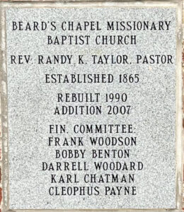 On October 21, 2007, Beard’s Chapel enlarged the vestibule, remodeled the women’s and men’s bathroom, added a sound system and financial room, laid cornerstones and bricked the exterior.